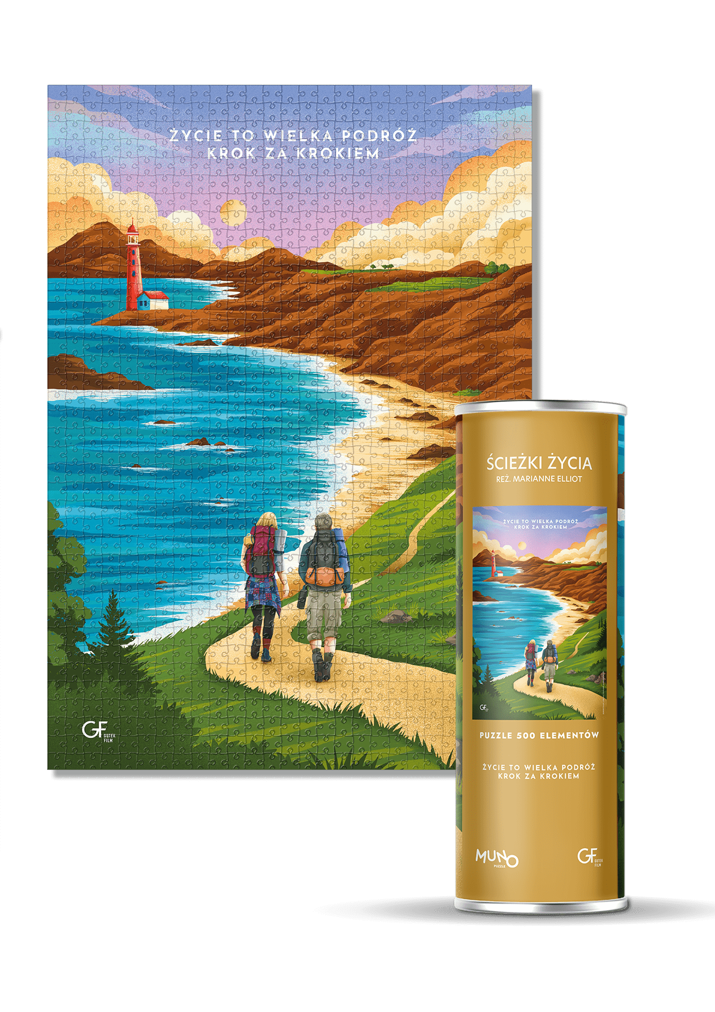 Limitowane puzzle ŚCIEŻKI ŻYCIA (500 elementów) to idealna propozycja, by na chwilę zwolnić i poukładać — dosłownie i w przenośni. Przepiękna, specjalnie zaprojektowana ilustracja jest inspirowana filmem „Ścieżki życia” z Gillian Anderson i Jasonem Isaacsem w rolach głównych.